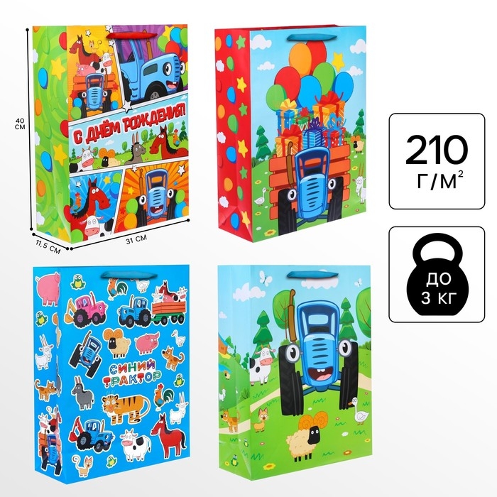 Пакет ламинированный вертикальный, Синий трактор, 31 х 40 х 11,5 см, МИКС