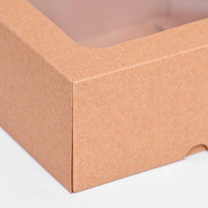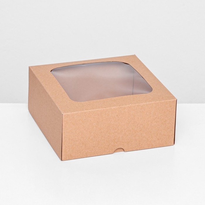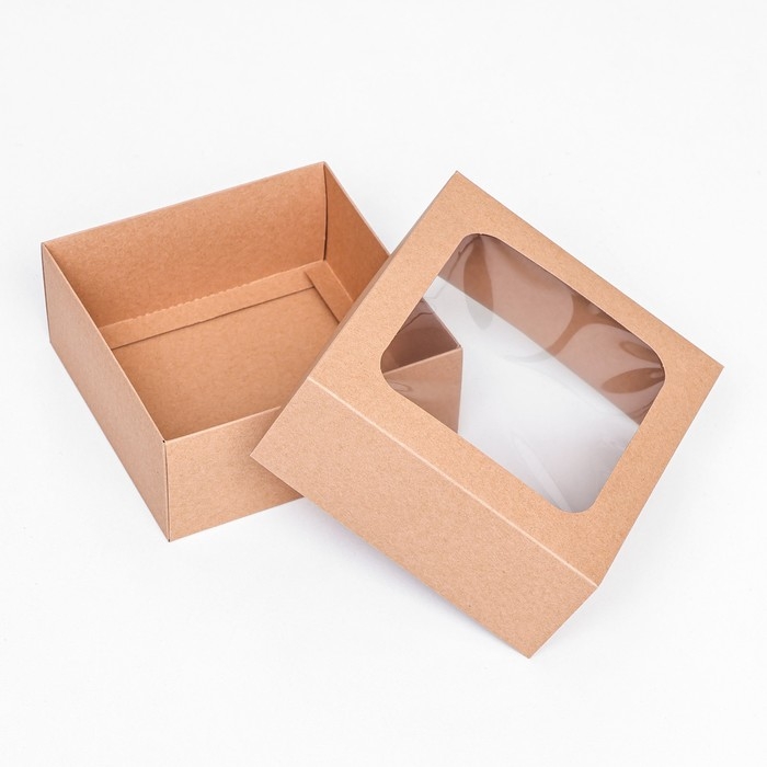 Коробка складная, крышка-дно, с окном, крафт, 15 х 15 х 6,5 см,