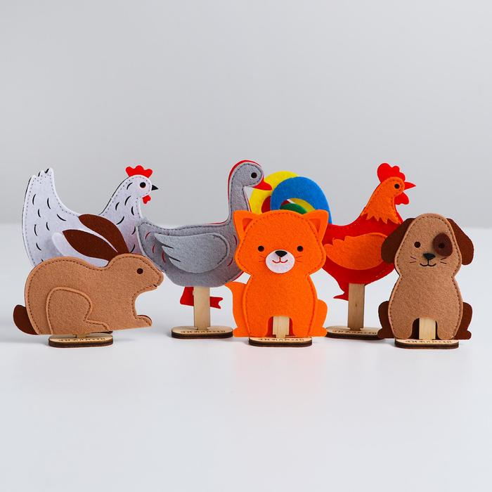 - Фигурка из фетра (8 см) — 6 шт. (собака, кошка, кролик, петух, курица, гусь).