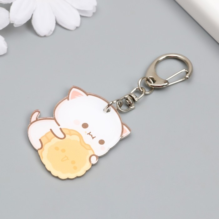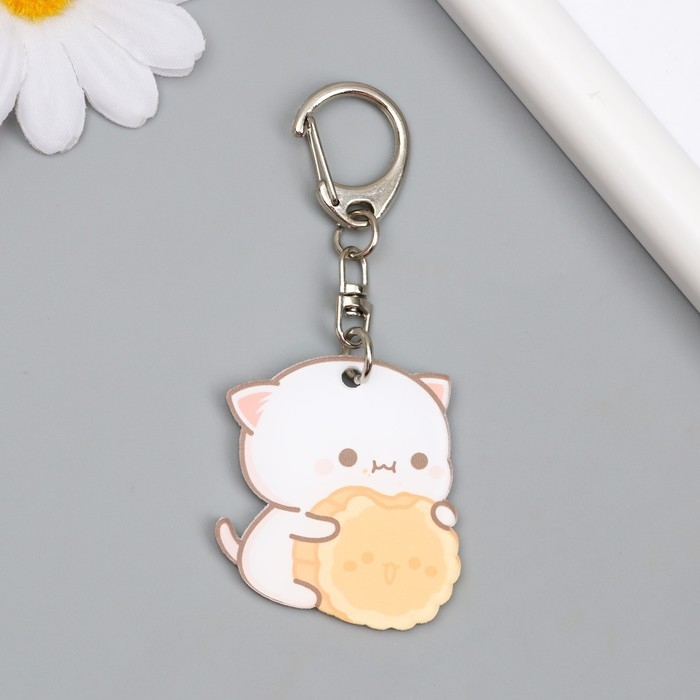 Брелок акрил "Котёнок с крекером" 4х3,4 см
