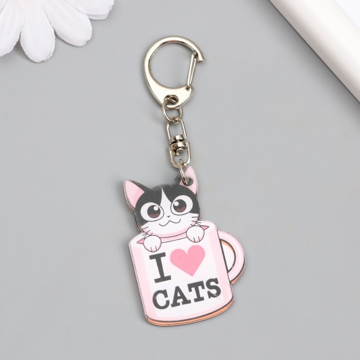 Брелок акрил "Котик в кружке" 4,5х3,2 см