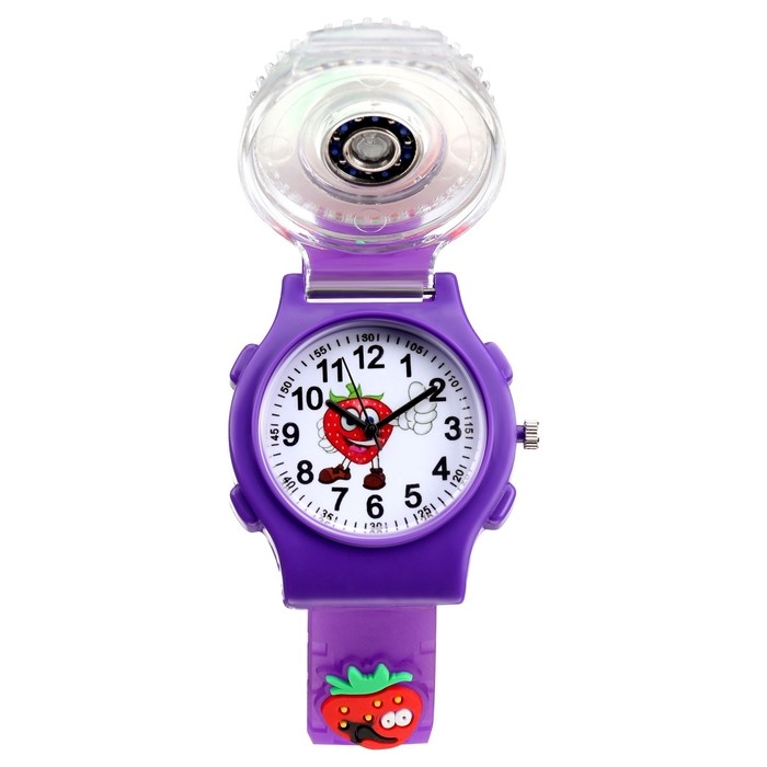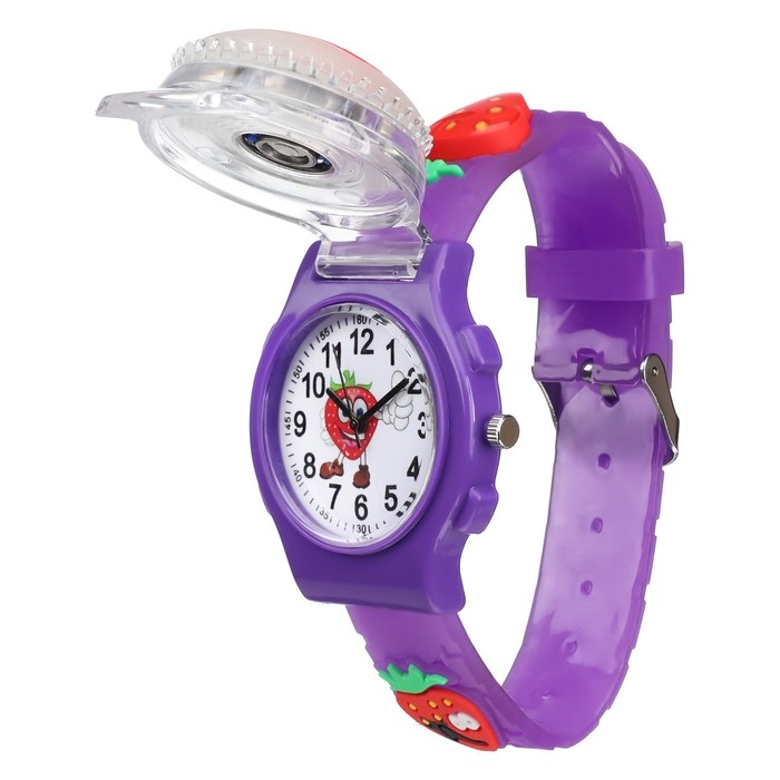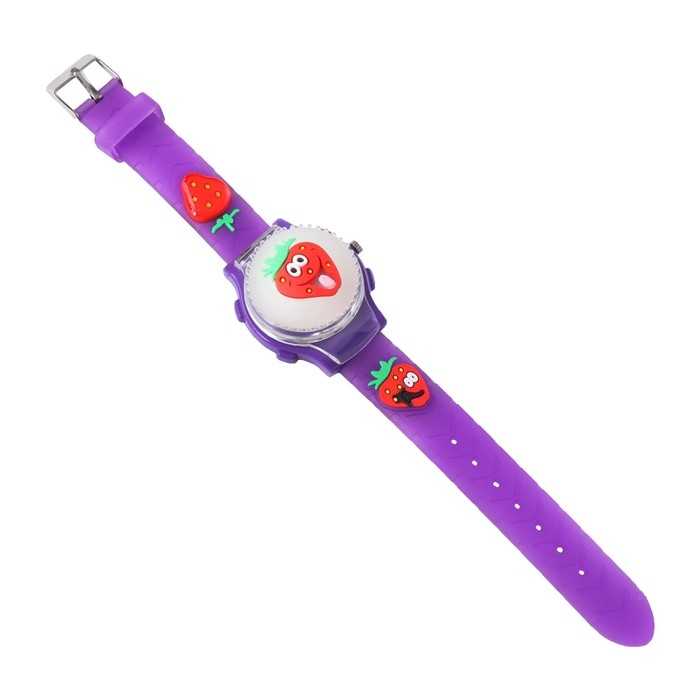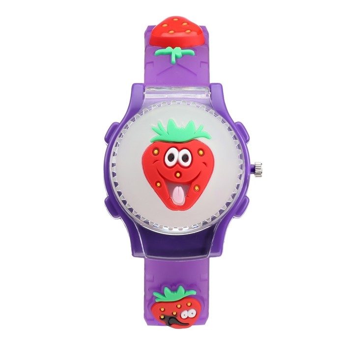 Часы наручные детские, "Клубника", d-3,5 см, ремешок силикон l-21,5 см, с подсветкой