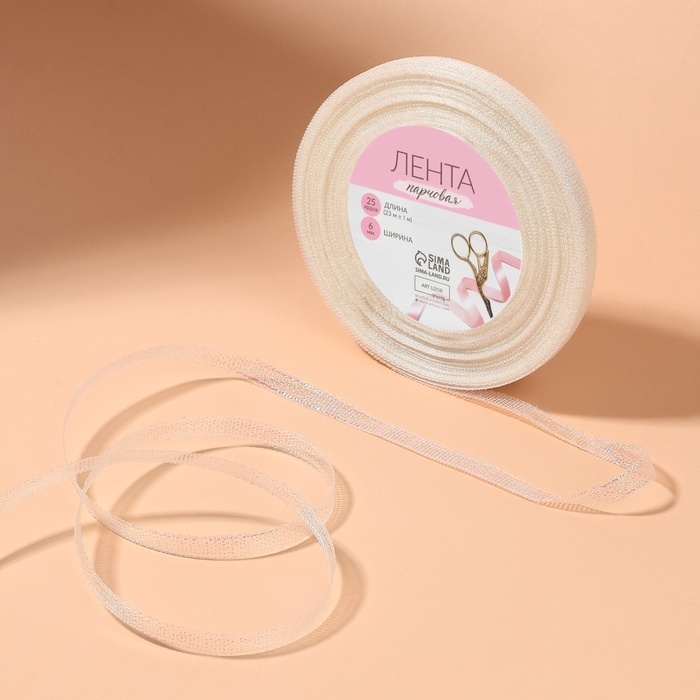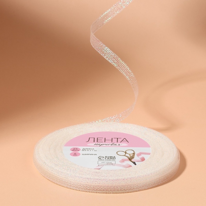 Лента парчовая, 6 мм, 23 ± 1 м, цвет голография