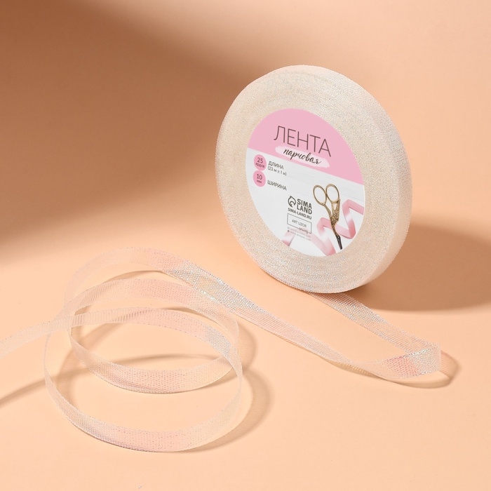 Лента парчовая, 10 мм, 23 ± 1 м, цвет голография