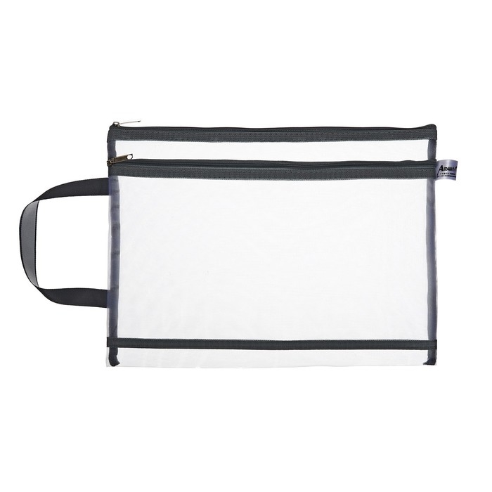 Папка-конверт на молнии формат А4, 2 отделения, с ручкой, Сеточка Серый