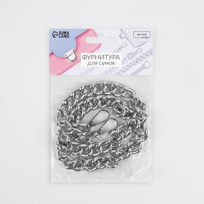 Цепочка для сумки, с карабинами, 14 × 18 мм, 60 см, цвет серебряный