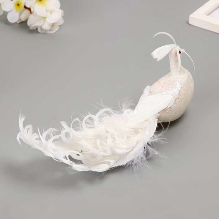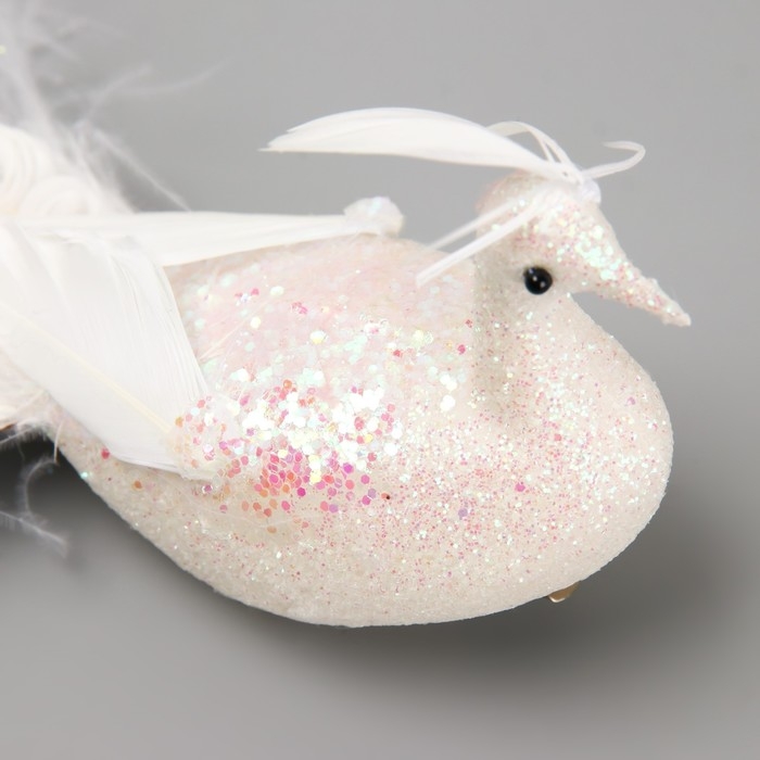 Пушистик на прищепке "Голубь с высоким хохолком и в блестках" белый 7х5х28 см