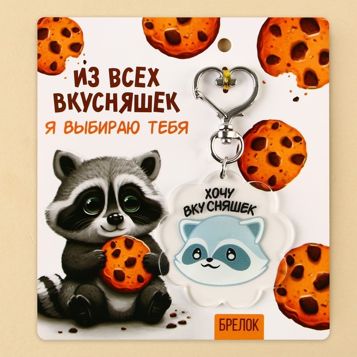 Брелок акрил "Котёнок с крекером" 4х3,4 см