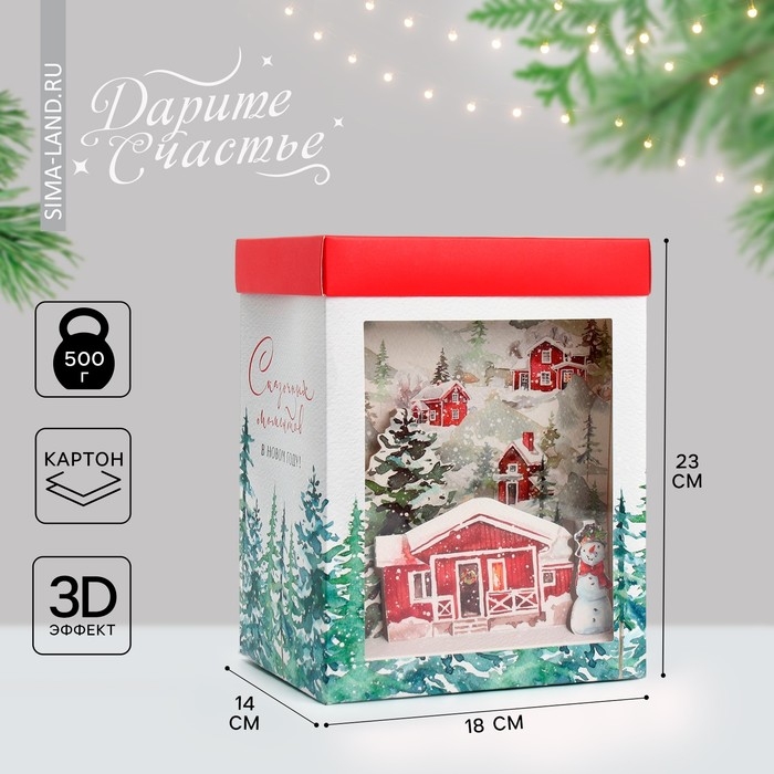 Новый год. Коробка подарочная новогодняя складная с 3D эффектом «Сказочных моментов», 18 х 14 х 23 см, Новый год