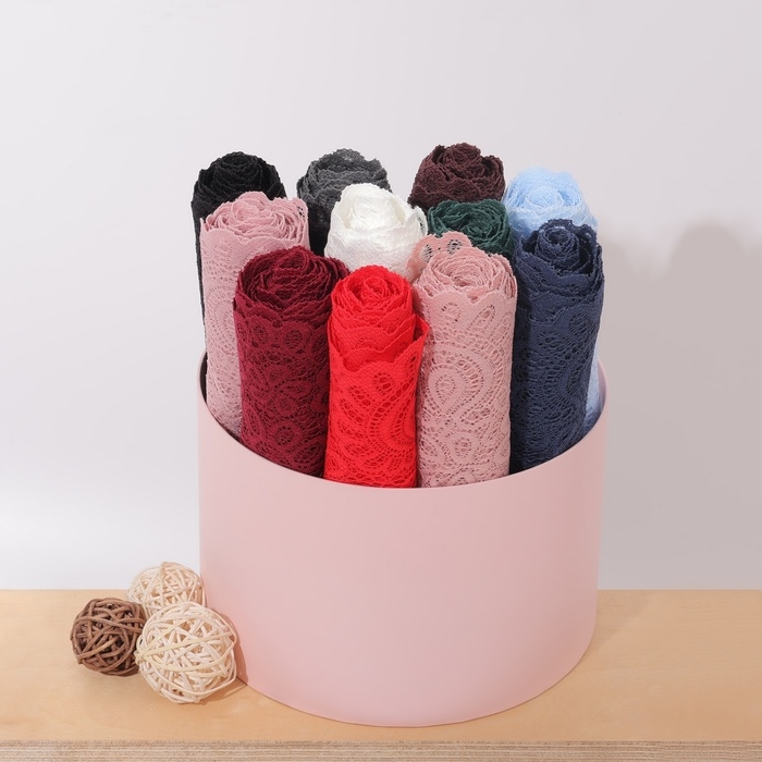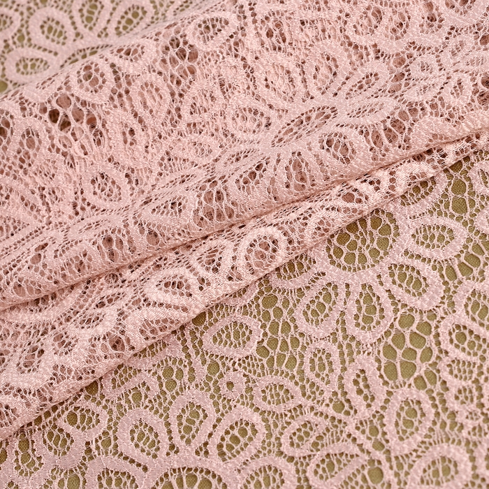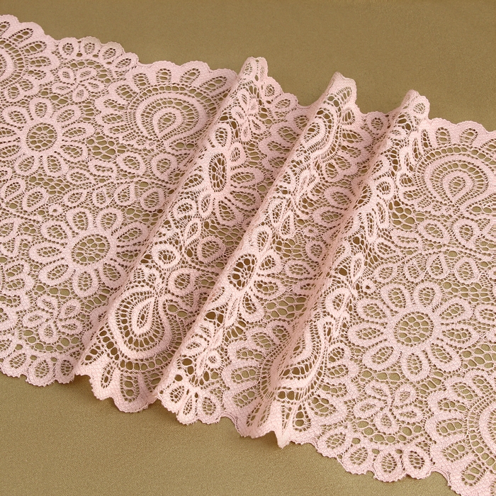 Кружевная эластичная ткань, 190 мм × 2,7 ± 0,5 м, цвет розово-бежевый
