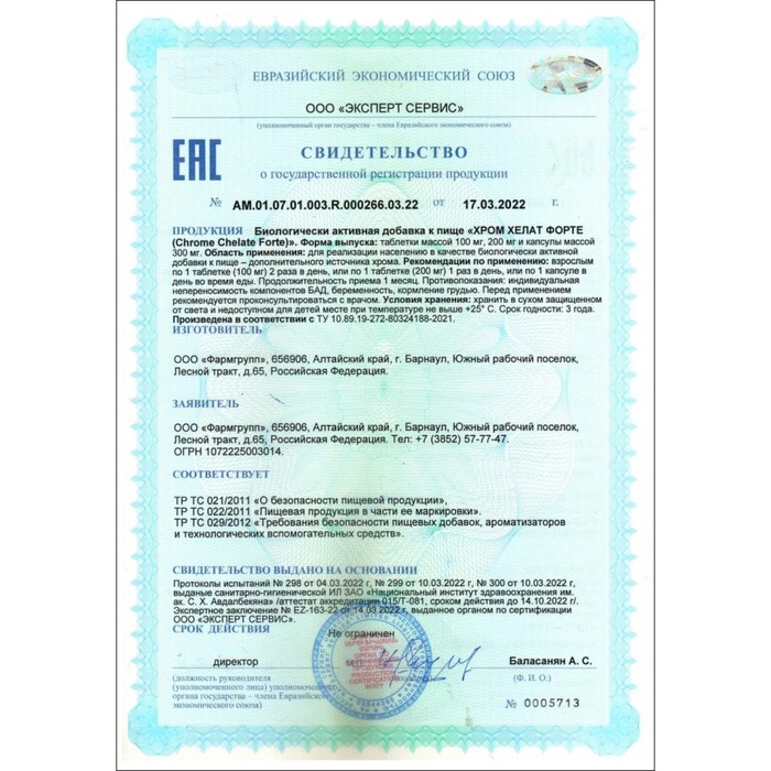 Хром участвует в регуляции работы сердечной мышцы и кровеносных сосудов, благоприятно влияет на выведение из организма солей тяжелых металлов, токсинов. Участвуя в транспорте кальция и метаболизме некоторых гормонов (например, дегидроэпиандростерона), хром способствует повышению плотности костной ткани.