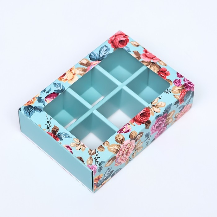 Коробка для конфет 6 шт, "Розовые розы" 13,7 х 9,8 х 3,9. Кондитерская упаковка