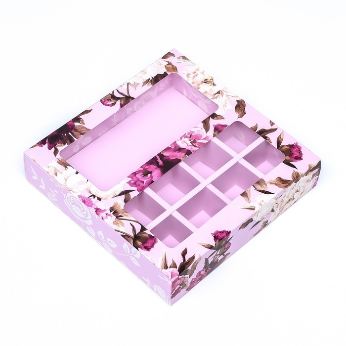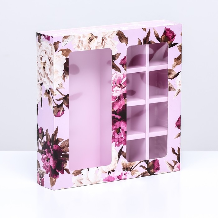 Коробка для 8 конфет + шоколад, с окном , "Розы" 17,7 х 17,8 х 3,8 см. Кондитерская упаковка