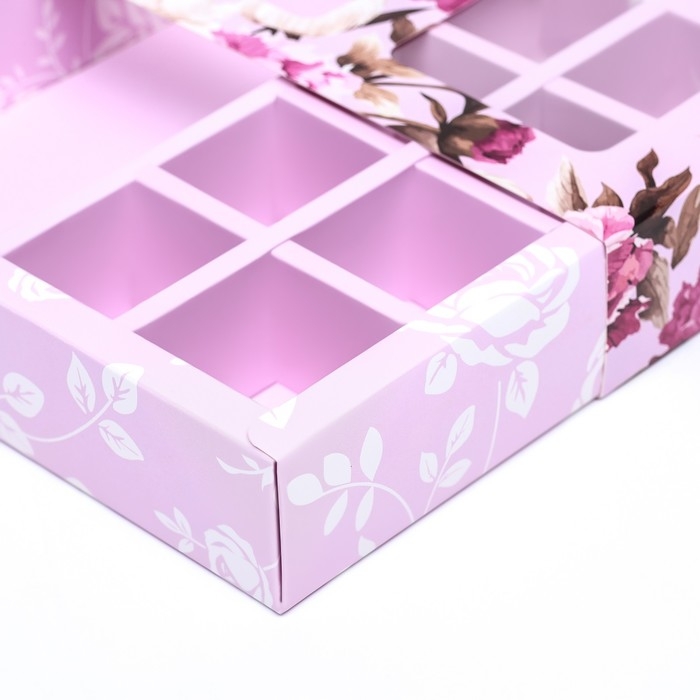 Коробка для конфет, кондитерская упаковка, 9 ячеек, «Нежность внутри», 14.7 х 14.7 х 3.5 см