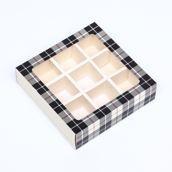 Коробка для 9 конфет с обечайкой , "Мужской" 13,8 х 13,8 х 3,8. Кондитерская упаковка