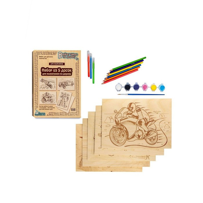 - В наборе 5 досок для выжигания.