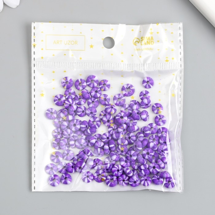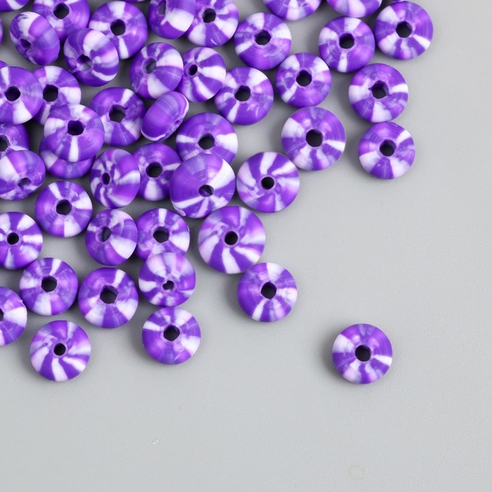 Бусины для творчества PVC "Колечки. Фиолетово-белые полосы" набор 112 шт 0,7х0,7х0,3 см