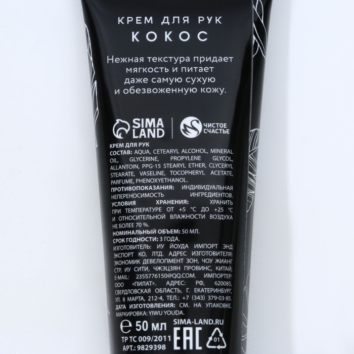 Крем для рук, 50 мл, аромат кокоса, ЧИСТОЕ СЧАСТЬЕ