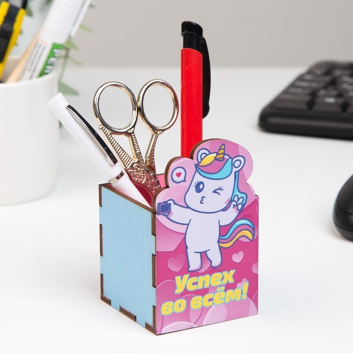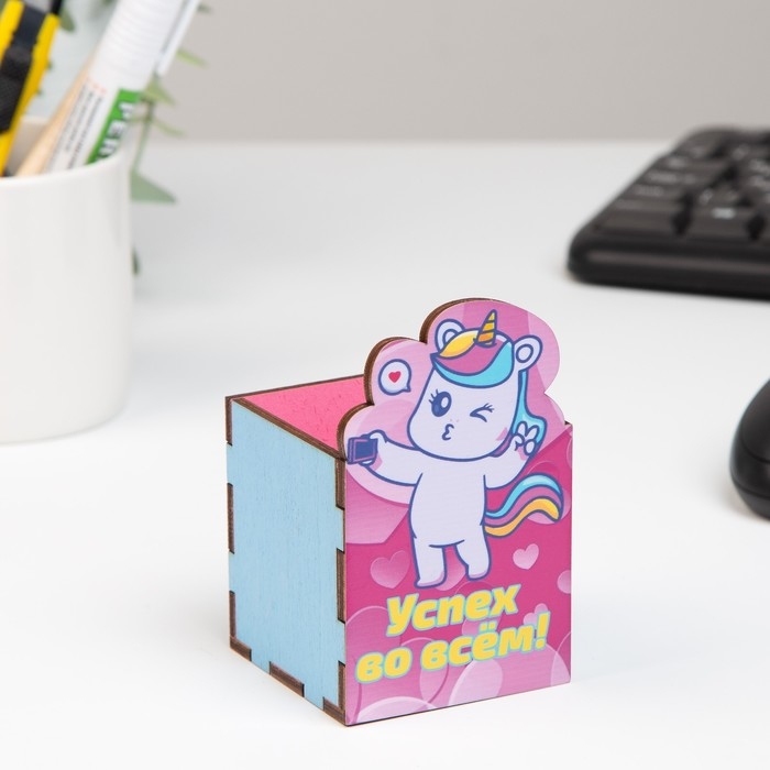 Карандашница "Успех во всем!" единорог, 6х6х10 см