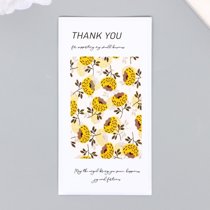 Наклейка бумага благодарность "Жёлтые маки" набор 50 шт 10х5 см