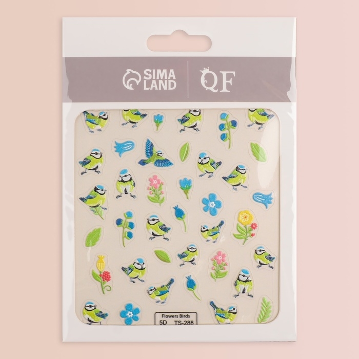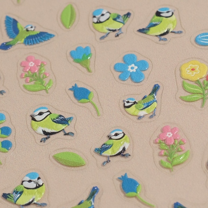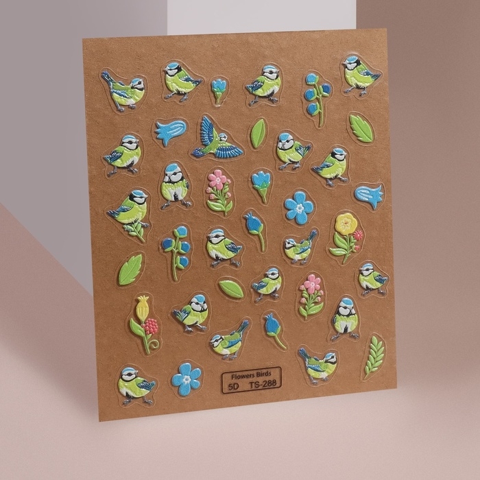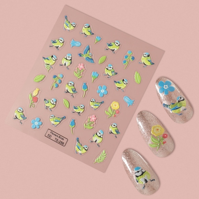 Наклейки для ногтей «Птенчики и цветы», объёмные, цвет голубой/жёлтый/зелёный