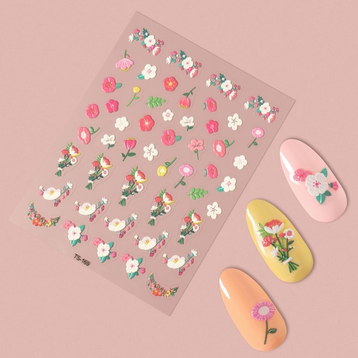 Наклейки для ногтей «Полевые цветы», объёмные, разноцветные