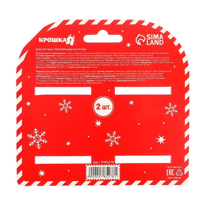 Браслетик-погремушка «Звездочка и конфетка» , 2шт, Крошка Я