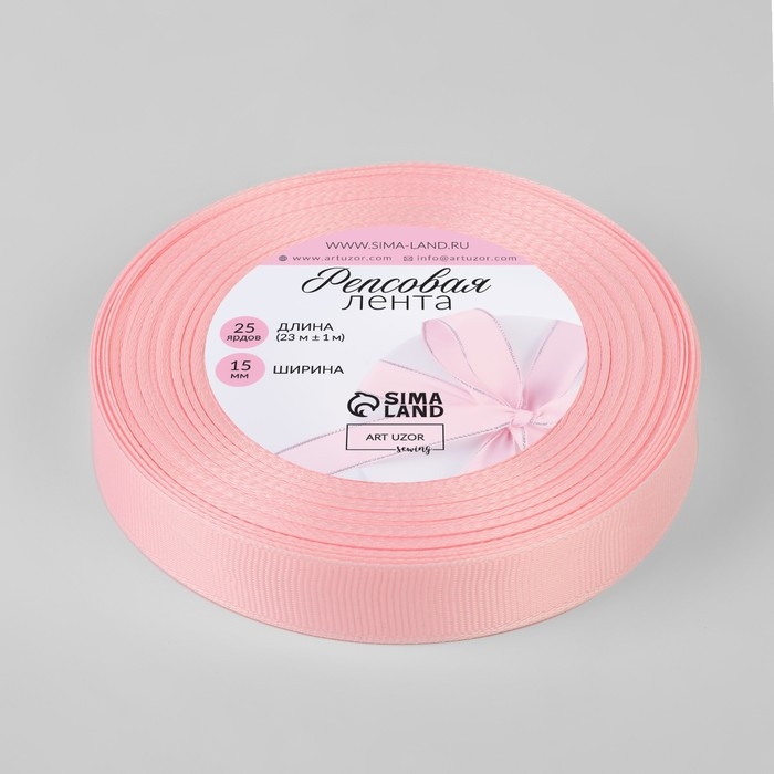 Лента репсовая, 15 мм, 23 ± 1 м, цвет нежно-розовый №43