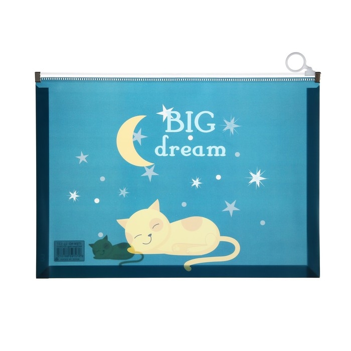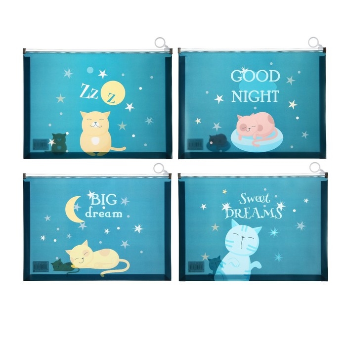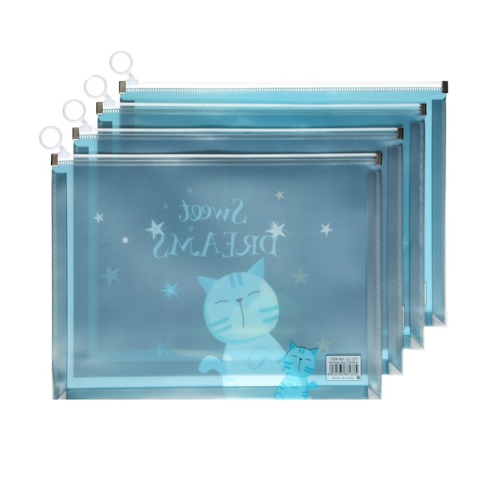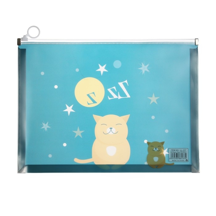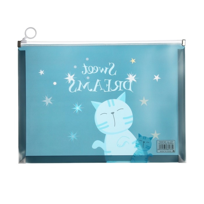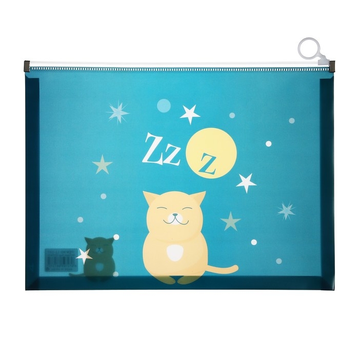 Папка-конверт на молнии формат А4, 180мкр, прозрачная с рисунком "Котик", МИКС