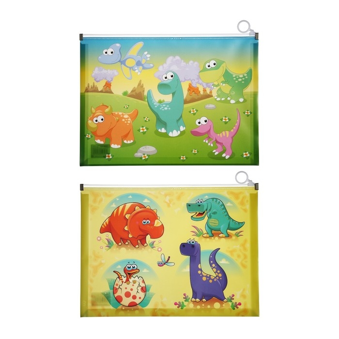 Папка-конверт на молнии формат А4, 180мкр, с рисунком "Драконы", МИКС