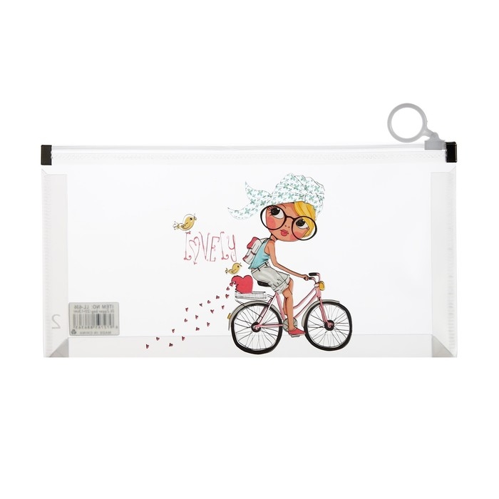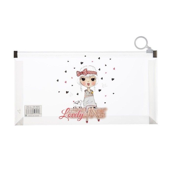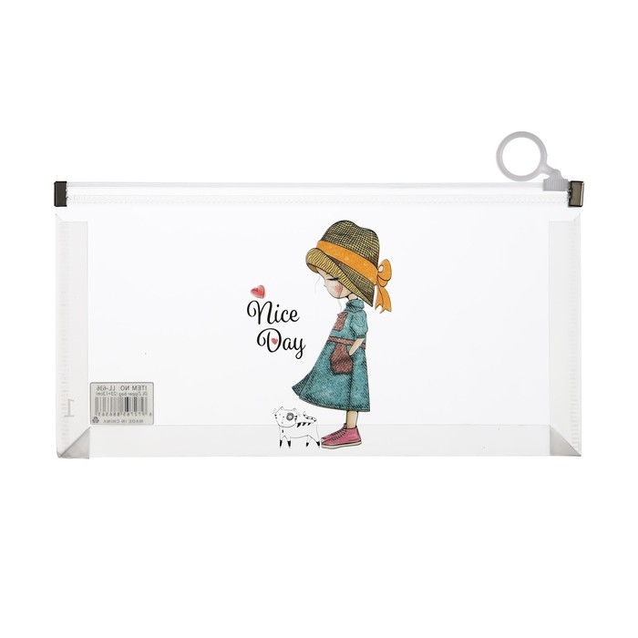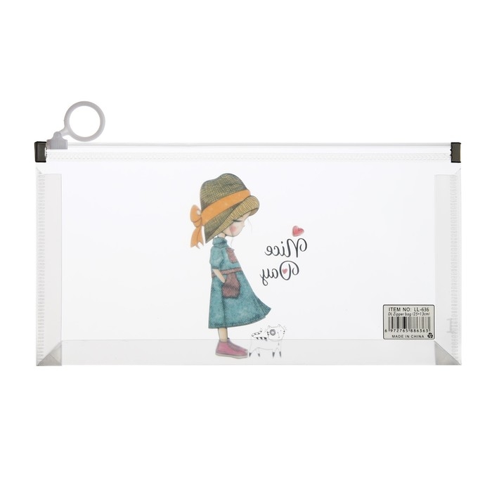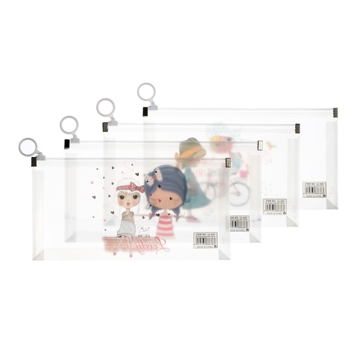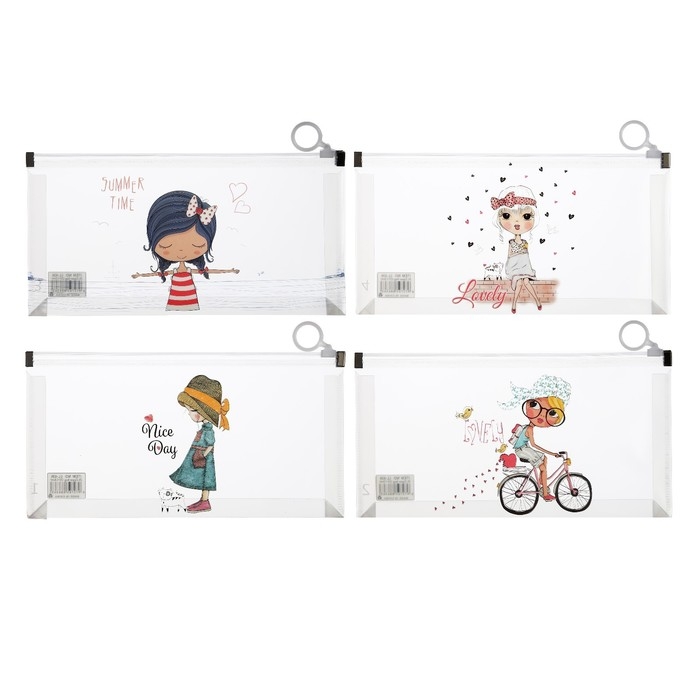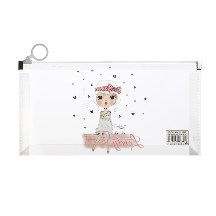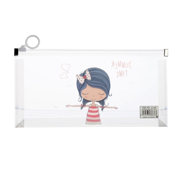 Папка-конверт на молнии формат А6, 180мкр, с рисунком "Маленькая девочка", МИКС