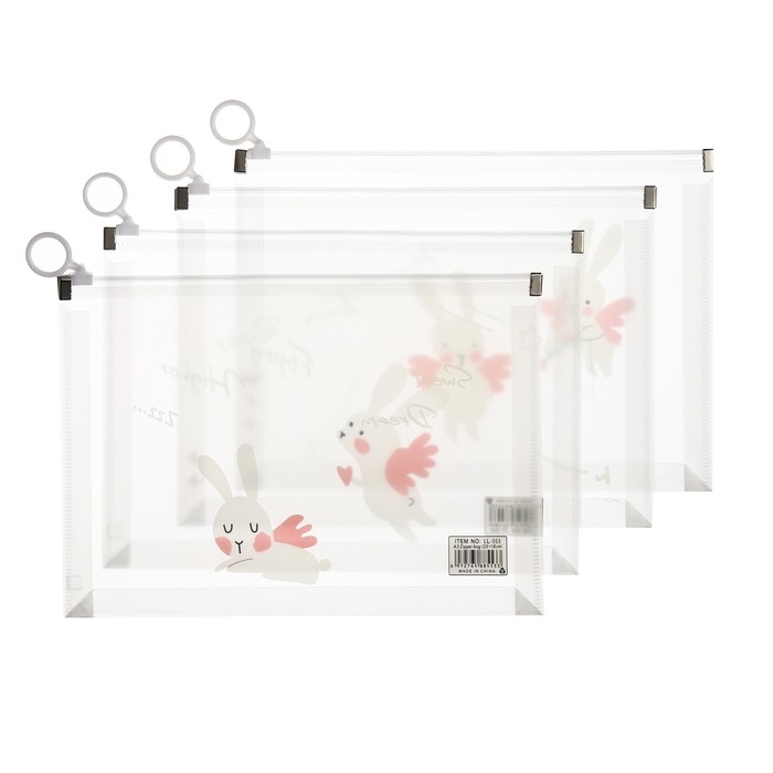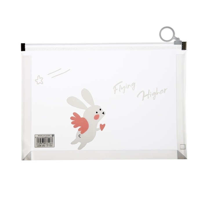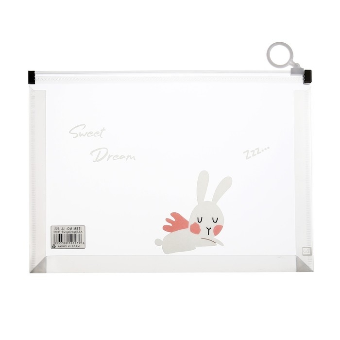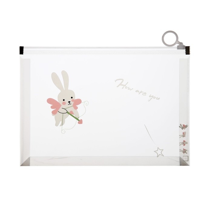 Папка-конверт на молнии формат А5, 180мкр, с рисунком "Зайчик", МИКС