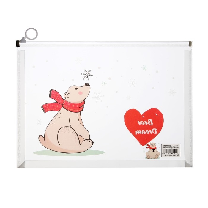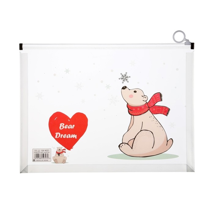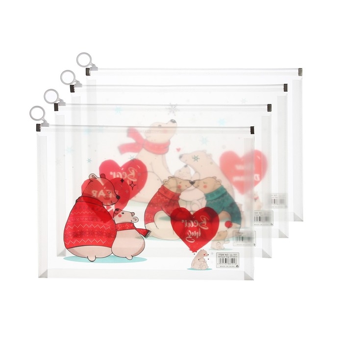 Папка-конверт на молнии формат А4, 180мкр, с рисунком "Медведи", МИКС