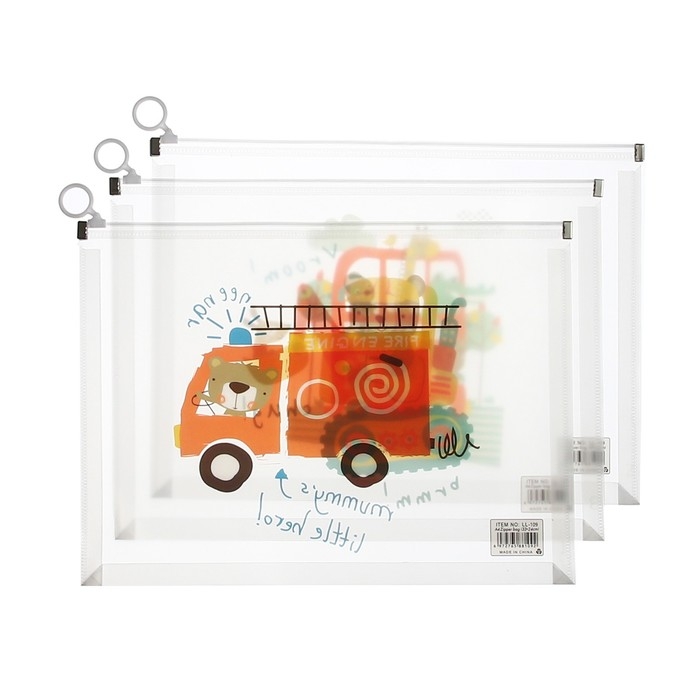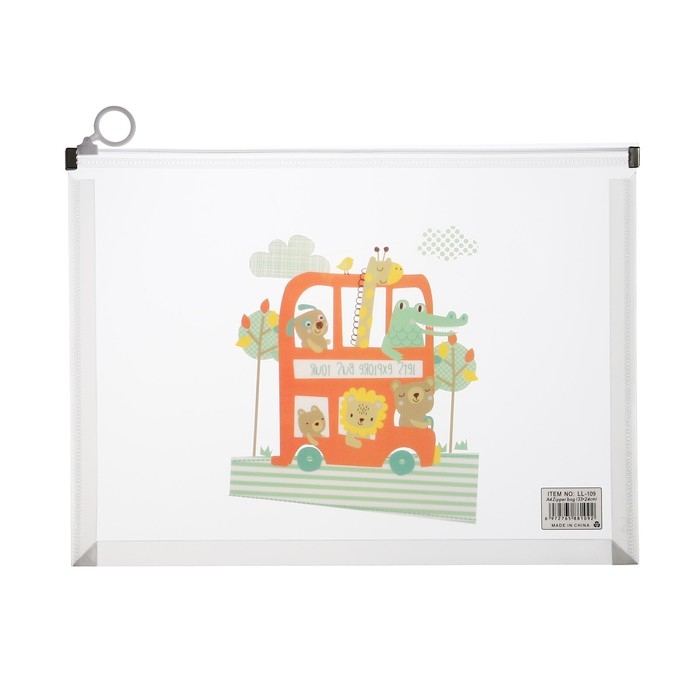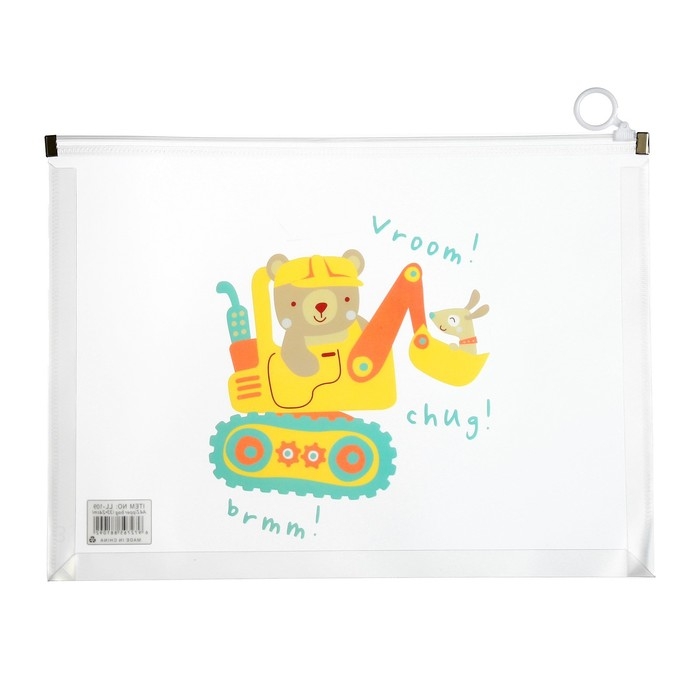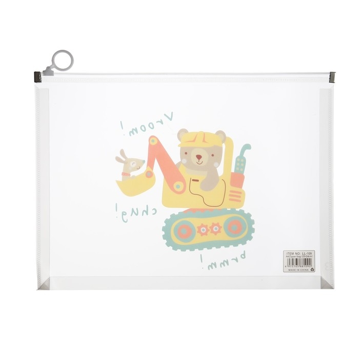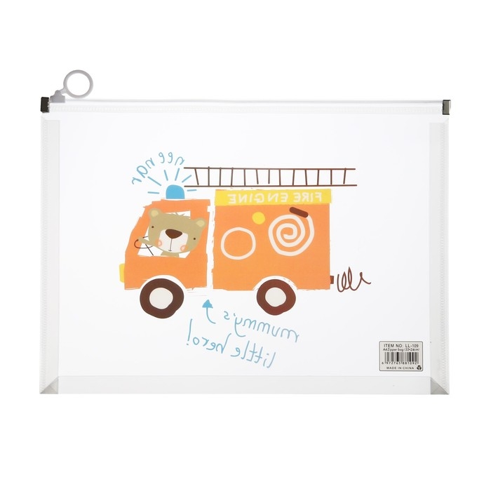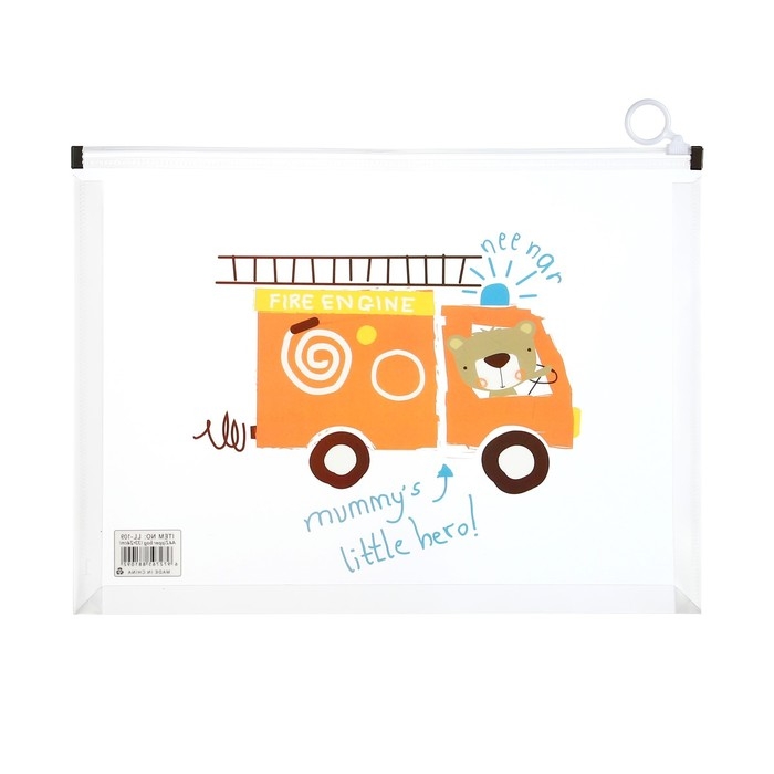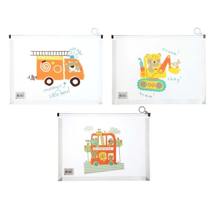 Папка-конверт на молнии формат А4, 180мкр, с рисунком "Веселая машинка", МИКС