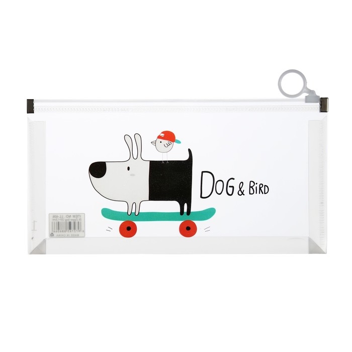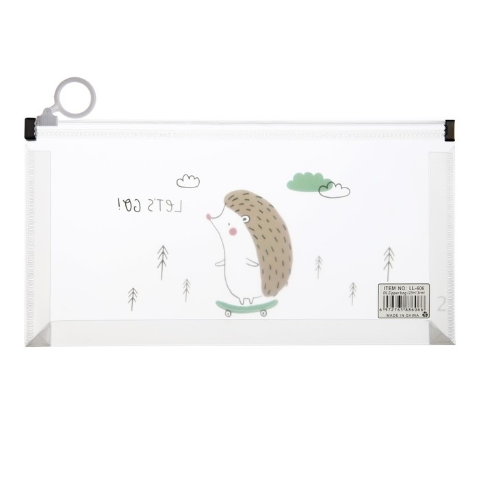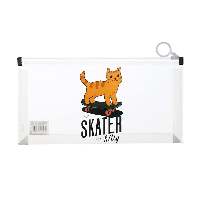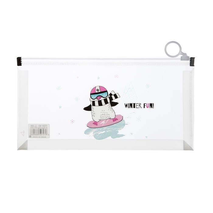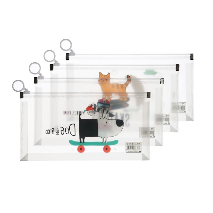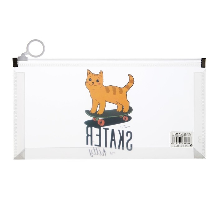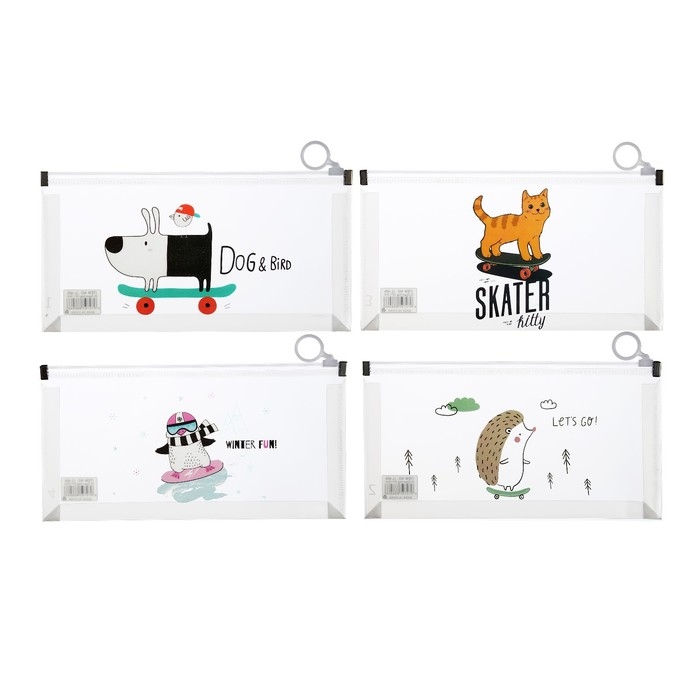 Папка-конверт на молнии формат А6, 180мкр, с рисунком"Звери на скейтборде и сноуборде", МИКС