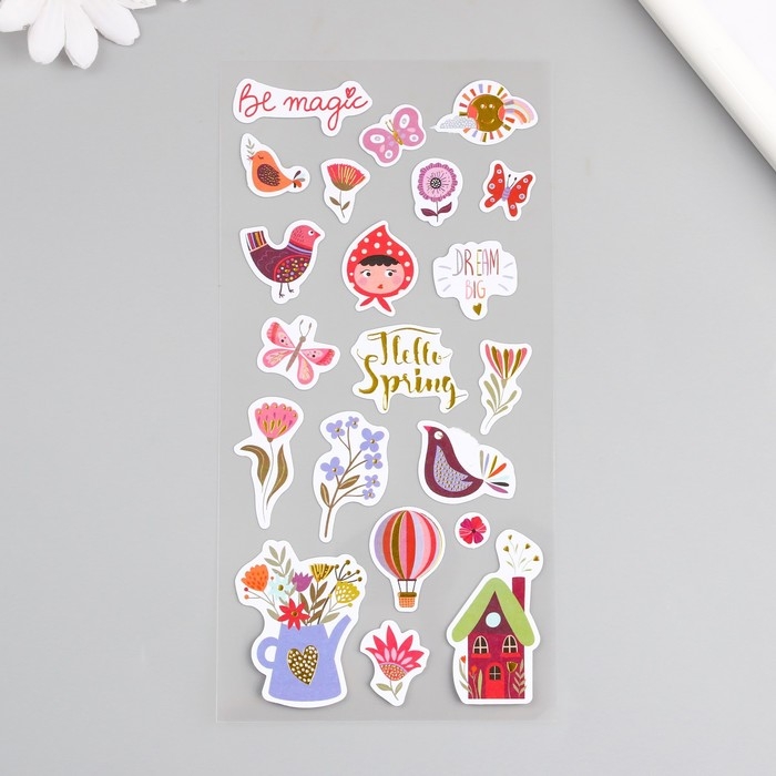 Наклейка пластик золотое тиснение "Цветы и любовь" МИКС 10,5х23 см