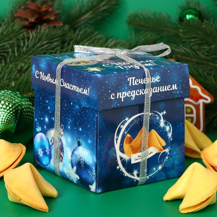 Новый год. Печенье песочное с предсказаниями удачи "Синие шары", 35 г, 5 шт