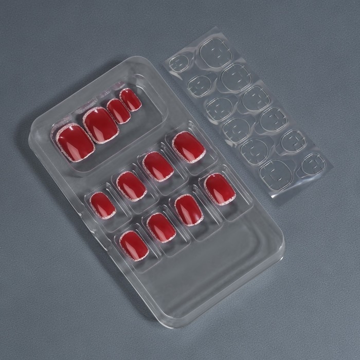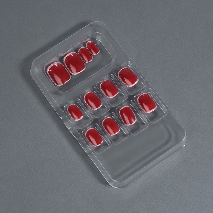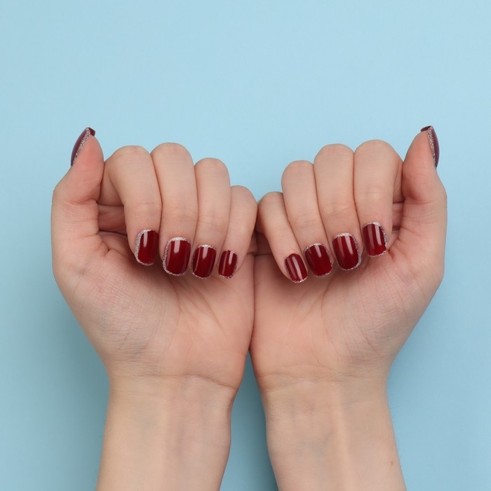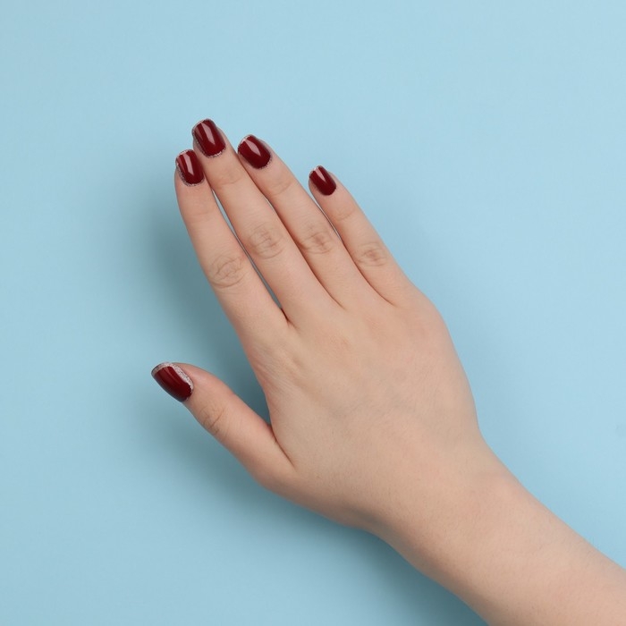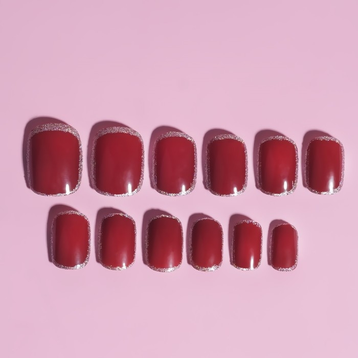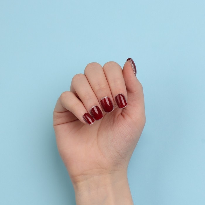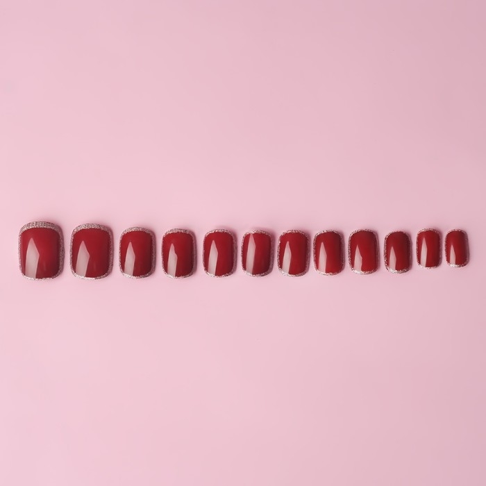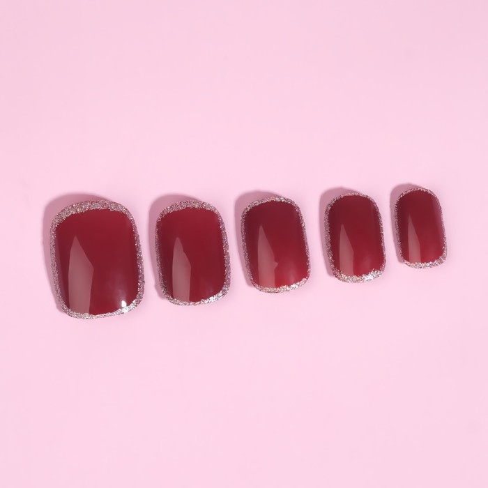 Накладные ногти «Wine», 12 шт, с клеевыми пластинами, форма мягкий квадрат, цвет бордовый/серебристый