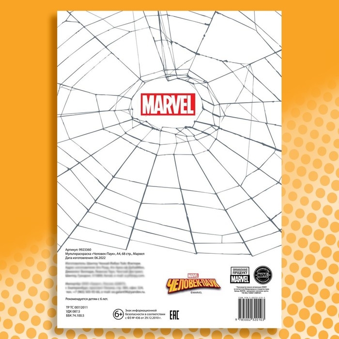 Мультираскраска «Человек-Паук», А4, 68 стр., Марвел