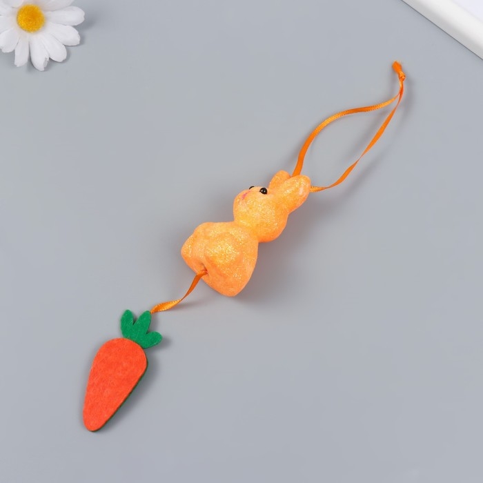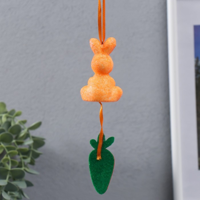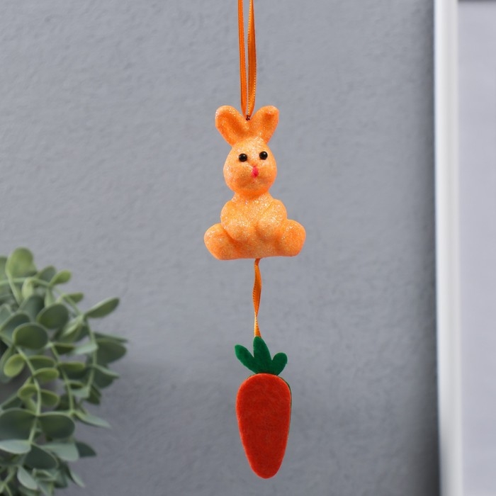 Декор подвеска "Кролик в блестках с морковкой" 4х3,5х13,5 см