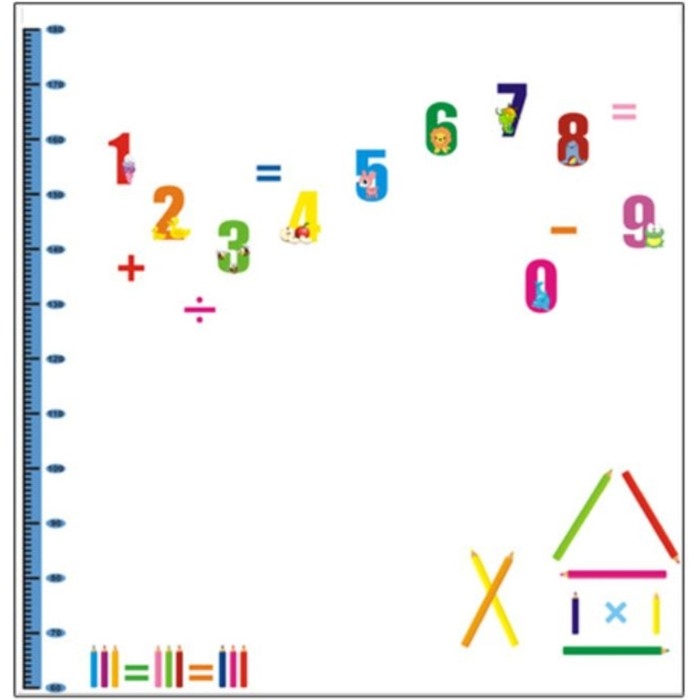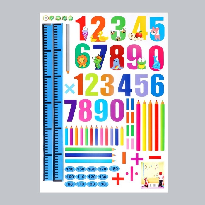 Наклейка пластик интерьерная цветная ростомер "Весёлые задачки" 50x70 см