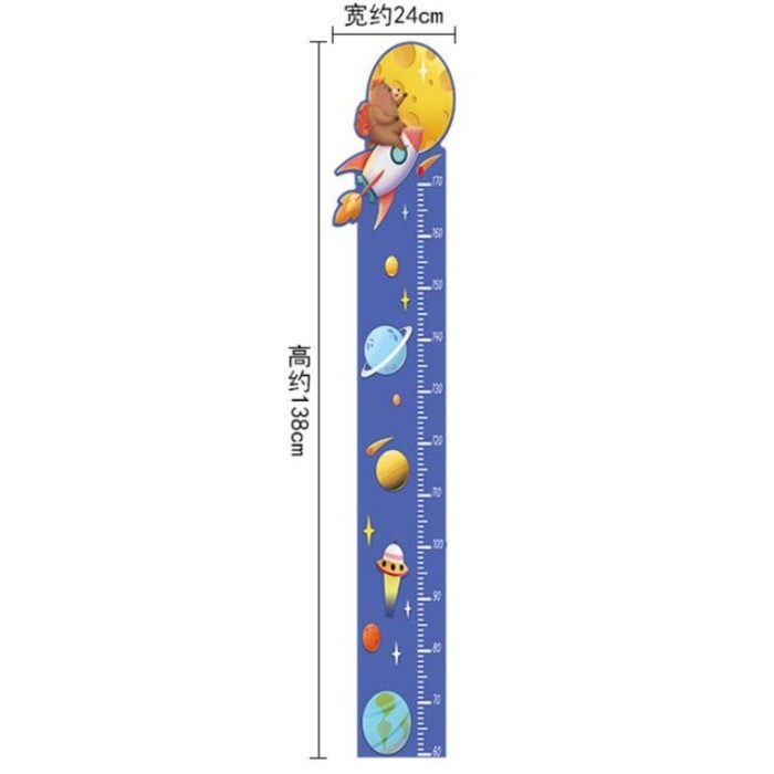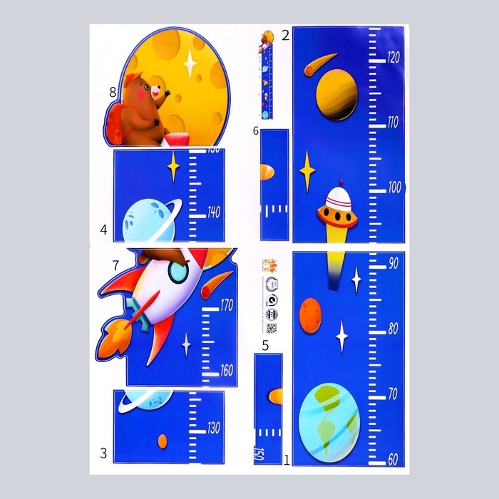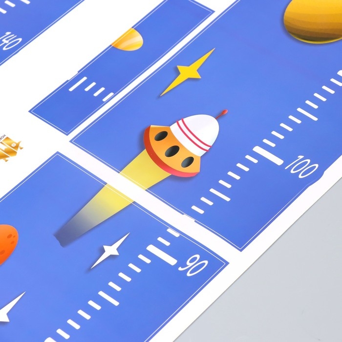 Наклейка пластик интерьерная цветная ростомер "Мишка на ракете" 50x70 см