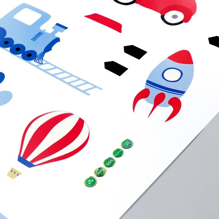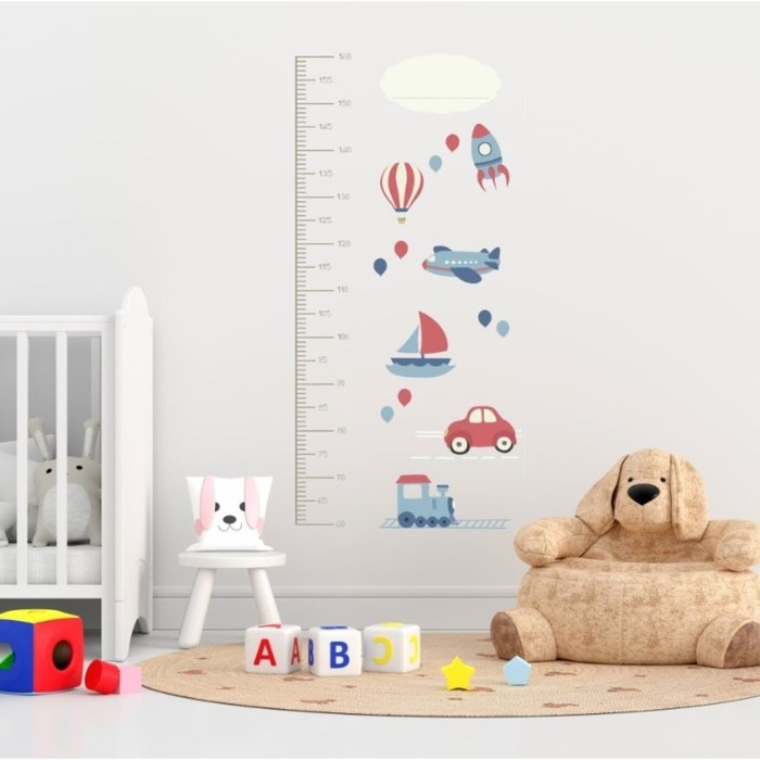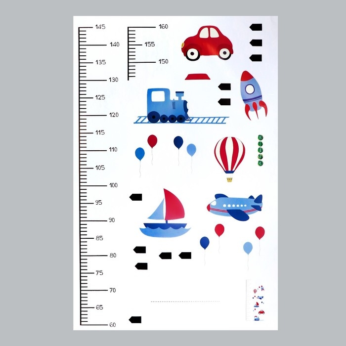 Наклейка пластик интерьерная цветная ростомер "Ехать, плыть, лететь" 60x90 см