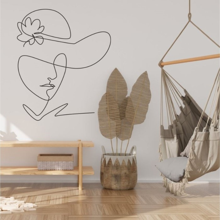 Наклейка пластик интерьерная чёрная "Абстракция. Девушка в шляпке" 40x60 см