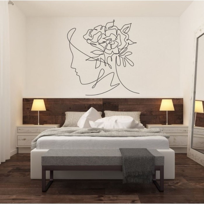 Наклейка пластик интерьерная чёрная "Абстракция. Девушка с цветами на голове" 40x60 см