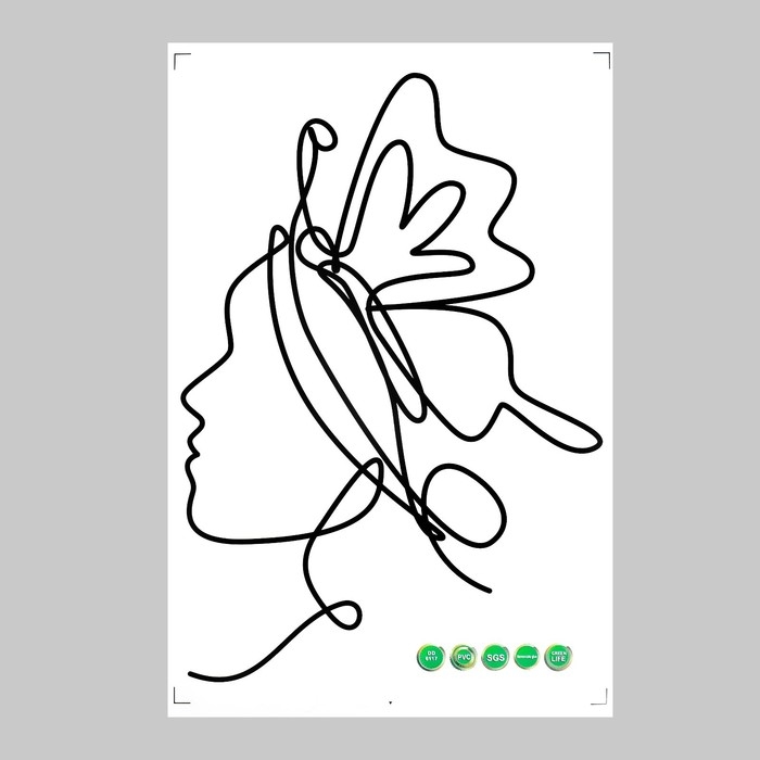 Наклейка пластик интерьерная чёрная "Абстракция. Девушка с бабочкой на голове" 40x60 см