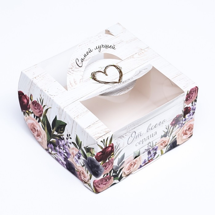 Коробка под бенто-торт с окном "Самой лучшей", 14 х 14 х 8 см
