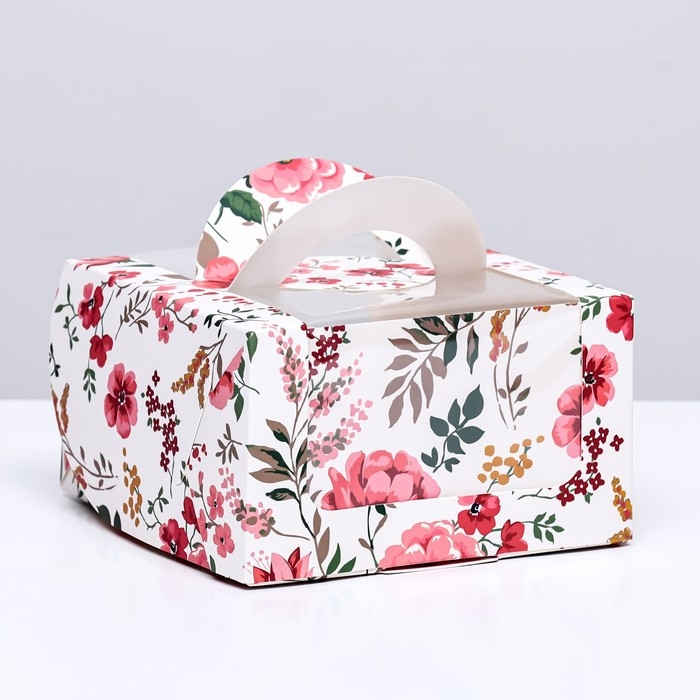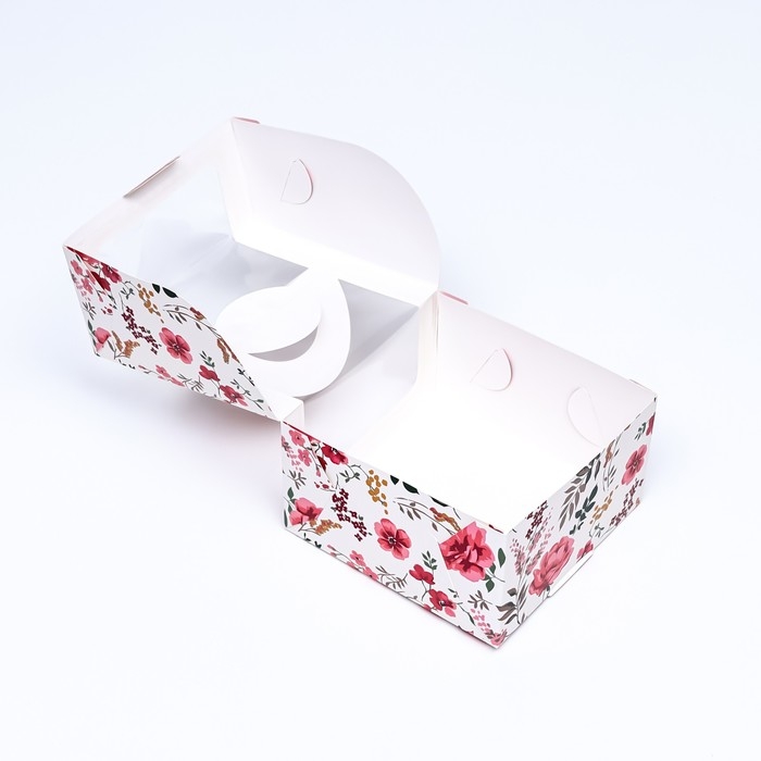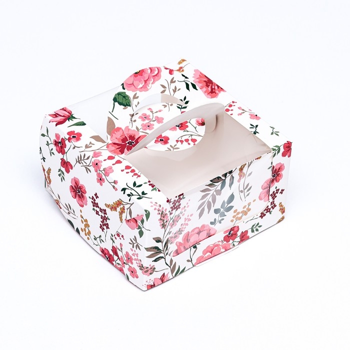 Коробка под бенто-торт с окном "Цветочная роспись", 14 х 14 х 8 см
