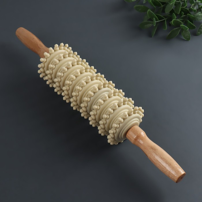 Массажёр «Скалка», универсальный, 38 × 7 см, 9 колёс, деревянный