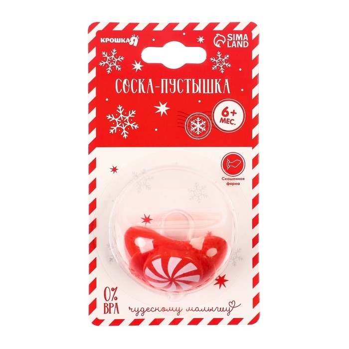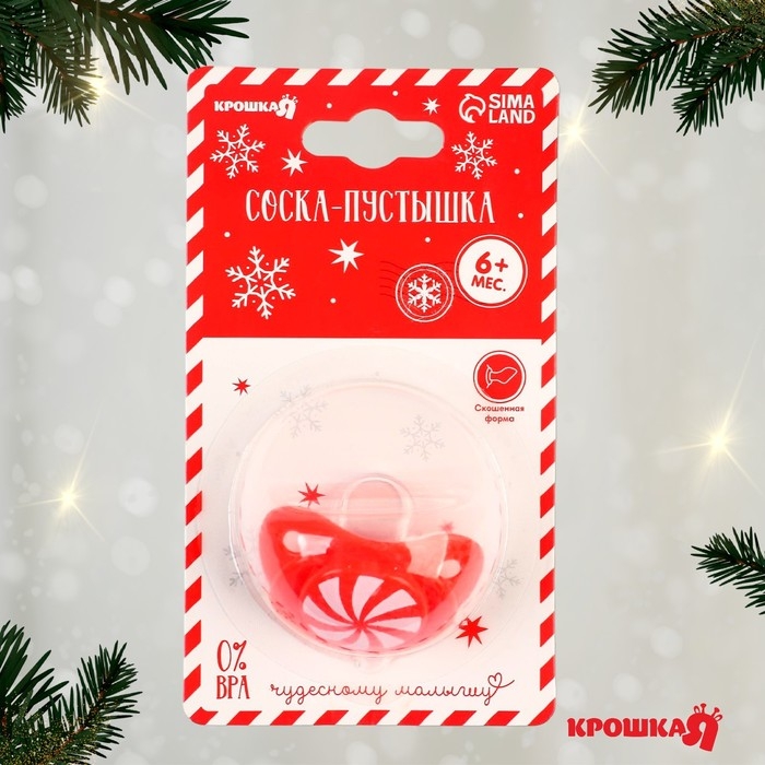 Соска - пустышка «Карамелька», ортодонтическая, силикон, +6 мес., новогодняя подарочная упаковка, Крошка Я